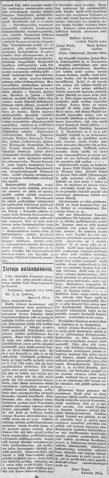 Kirjoitus on julkaistu Amerikan Suometar-lehdessä 8.4.1903.