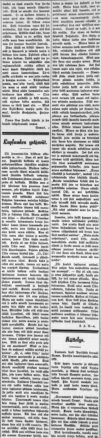 New Yorkin Lehti 11.8.1892, Juho Fredrik Nikusen kirjoitus: Lapsuuden ystävät
