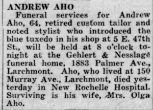 Silta-aho, Antti Oskari Juhonpoika (Andrew Oscar Aho) s. 29.4.1886 Lestijärvi, k. 5.9.1950 New Rochelle, New York. Vanhemmat Juho Jaakko Juhonpoika Silta-aho (s. 11.2.1854 Lestijärvi) ja Anna Loviisa Matintytär Lehtoluoma (s. 1.1.1854 Lestijärvi, k. 1.7.1915 Toholampi)