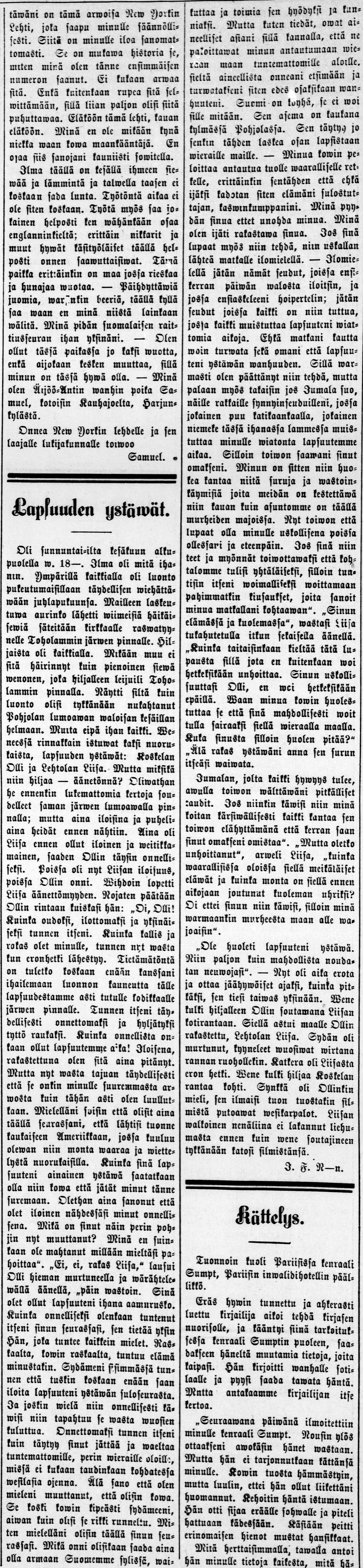 Tiedosto:11.8.1892 New Yorkin Lehti - Juho Fredrik Nikusen pienoisnovelli.jpg