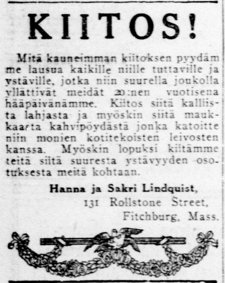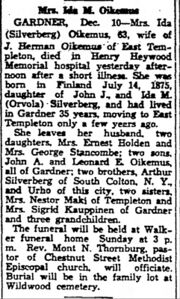 | 22. joulukuuta 2025 kello 09.45 | 2 3 1929 Fitchburg Sentinel Kalle R Aholan kuolinilmoitus.jpg (tiedosto) | 194 KiB | Hankeadmin | Leike: newspapers.com | 1 | |