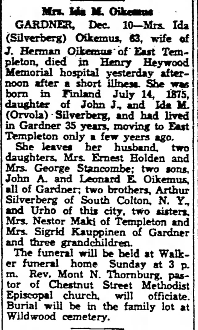 | 17. joulukuuta 2025 kello 21.34 | 10 12 1938 Fitchburg Sentinel - Ida M Silverberg Oikemus kuolinilmoitus.jpg (tiedosto) | 172 KiB | Hankeadmin | 1 | ||