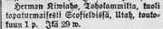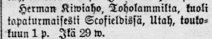 | 17. joulukuuta 2025 kello 21.11 | 5.6.1900 Siirtolainen- Herman Kiviahon kuolinilmoitus.jpg (tiedosto) | 27 KiB | Hankeadmin | 1 | ||