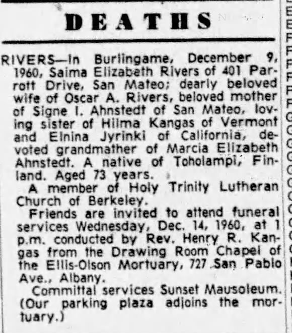 | 17. joulukuuta 2025 kello 21.36 | 12.12.1960 The Berkeley Gazette- Saima Elizabeth Laitalan kuolinilmoitus.jpg (tiedosto) | 96 KiB | Hankeadmin | 1 | ||