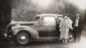 Näyttävä kuva Hjalmarista ja Lempistä, otettu ilmeisesti Amerikassa päätellen prameasta autosta. Kuva Kaarina Kerttulan kotiarkistosta.