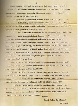 Toinen sivu Hjalmarin ja perheen kirjeestä 31.12.1939. Kaarina Kerttulan kotiarkistosta.