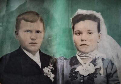 Josefiinan ja Kallen vihkikuva vuodelta 1893. Kuva jälkeläisten perhearkistosta.